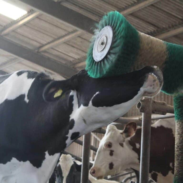 In between eating, milking, and sleeping, our cows enjoy automatic rotating brushes provide a satisfying scrub when they have an itch to scratch.