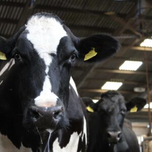 Our cows spend their autumn/winter days in spacious, well-ventilated barns with room to roam around and socialise. The barns have ‘cublices’ – padded mattresses for the cows to comfortably lie down on, topped with chopped straw bedding for extra comfort and absorbency. They have access to nutritious food and fresh water 24/7.